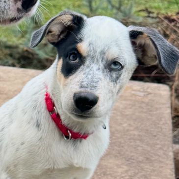 Daisy is a beautiful double merle who endured unimaginable neglect—locked in a closet for four days without food or water. When she was finally discovered, weak and frightened, PawSavers Rescue in Ohio stepped in to give her the care and compassion she desperately needed until the found us. We drove to Ohio and adopted Daisy, we love her immensely. Daisy’s resilience and gentle spirit inspire our mission every day. She’s the reason Daisy’s Promise exists: to ensure no dog is ever forgotten, and every life has a chance to heal and thrive. We thought Daisy had sight issues like many Double Merles have. But after having her for a while now, she has a malformed pupil, which is a trait for many Double Merles